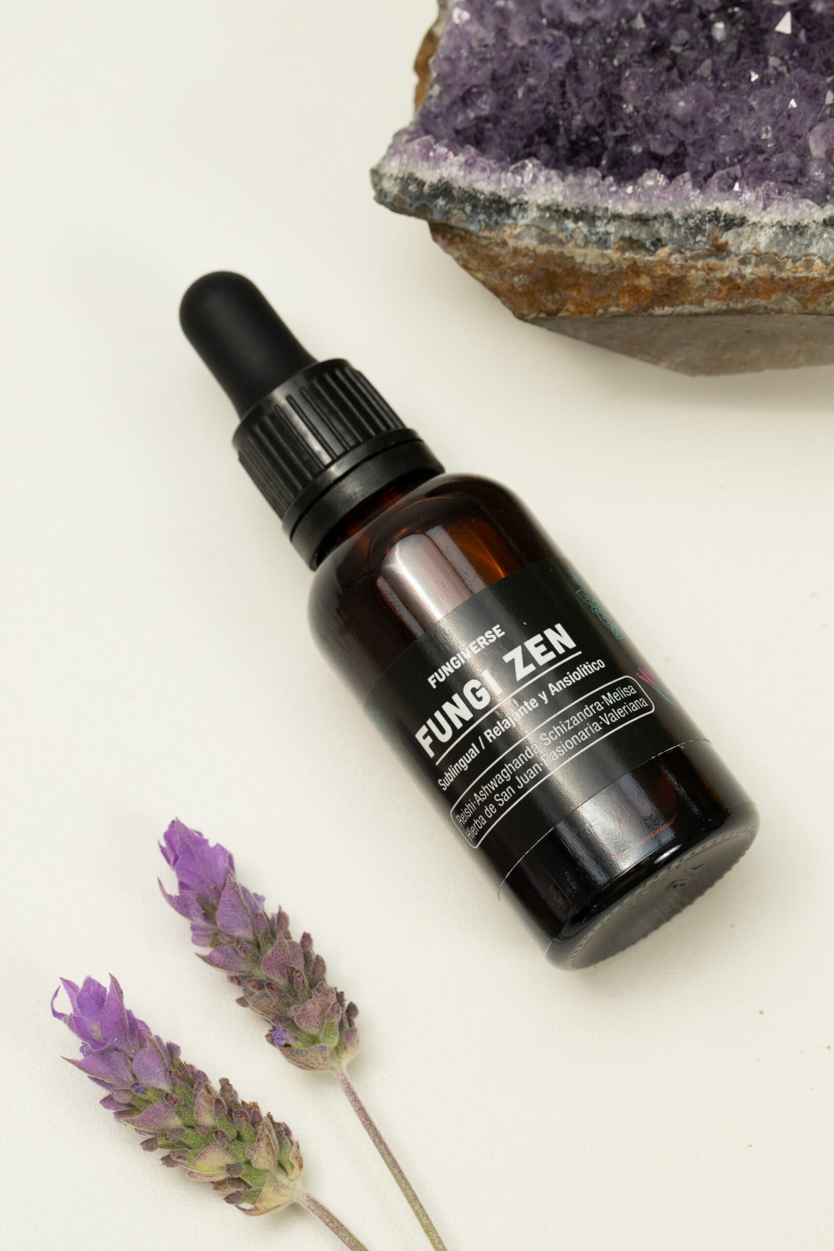 Fungi Zen es una fórmula sublingual diseñada para actuar rápidamente y brindar alivio efectivo en momentos de ansiedad, tensión nerviosa, estrés crónico y migrañas.